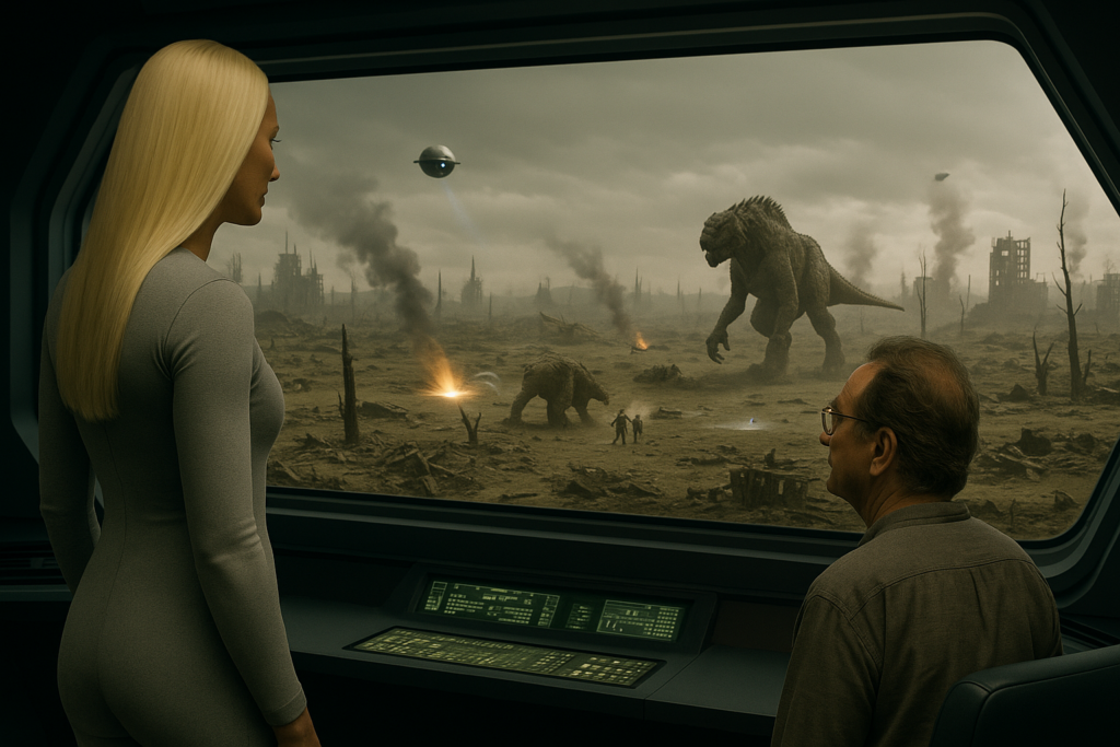 - « Oui, c'était l'un de nos vaisseaux spatiaux », a expliqué Thao. « Il observera le cataclysme de très haut. Il y a dix-sept personnes à bord, qui feront ce qu'elles peuvent pour aider les survivants, mais ce sera très peu. Observez. »